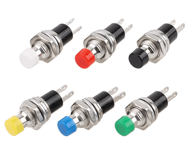 Bouton poussoir PBS-110 – 7mm – 2 broches – Momentané (NO) – 6 couleurs