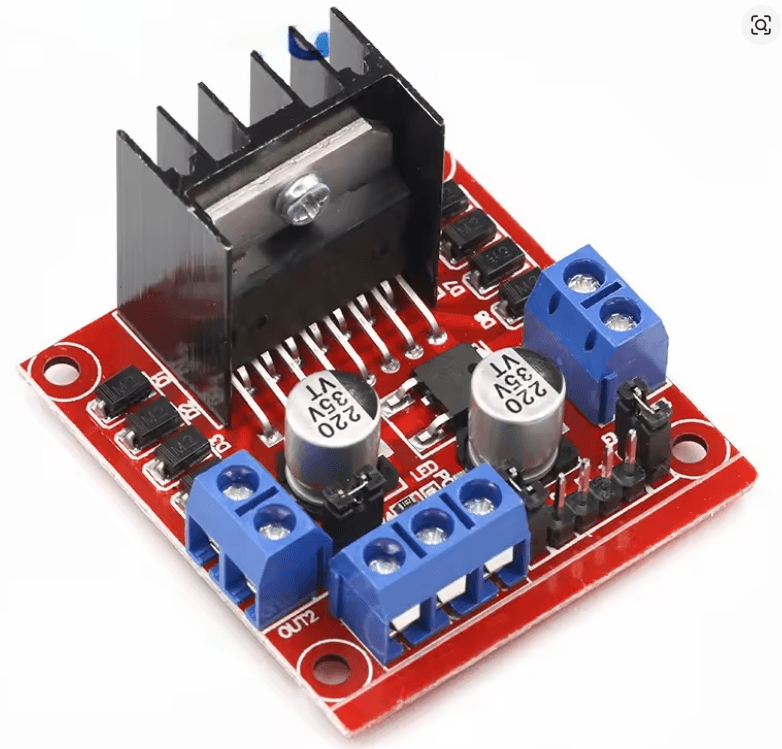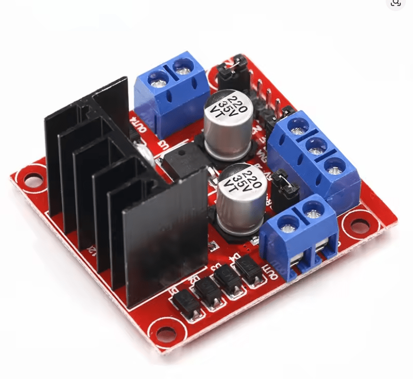 Le module L298N est un pilote de moteur basé sur un double pont en H, permettant de contrôler 2 moteurs DC ou 1 moteur pas à pas. Il est très utilisé en robotique pour piloter la vitesse et le sens de rotation des moteurs via Arduino, ESP32 ou autres microcontrôleurs.